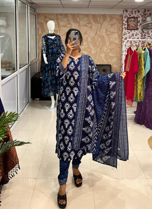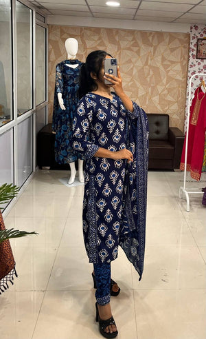 Presenting Beautiful Printed Kurti Pant & Dupatta Set.