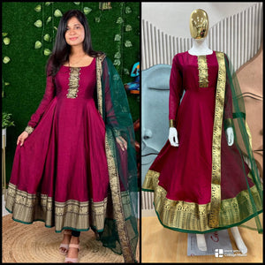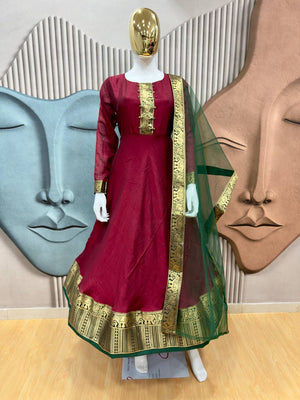 Festive Vichitra Silk Gown with Net Dupatta