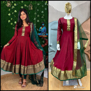 Festive Vichitra Silk Gown with Net Dupatta