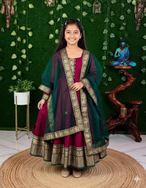 A stunning festive Anarkali designed for your little princess! premium finishing, and a graceful flare — perfect for festivals, weddings, and special occasions.