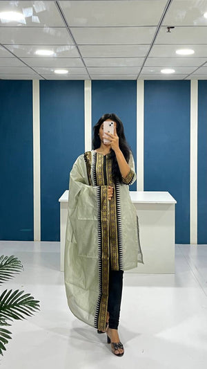 Chanderi Cotton Kurta Set, designed for comfort and timeless style. Crafted from premium Chanderi cotton fabric, this kurta features a beautiful jacquard woven border that adds a rich and traditional touch.