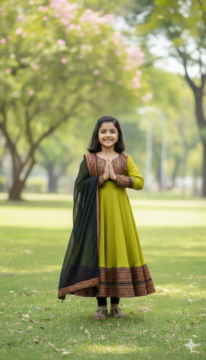 A stunning festive Anarkali designed for your little princess! premium finishing, and a graceful flare — perfect for festivals, weddings, and special occasions.