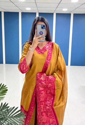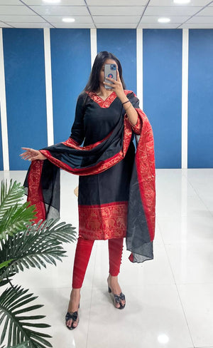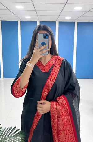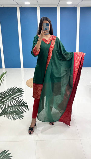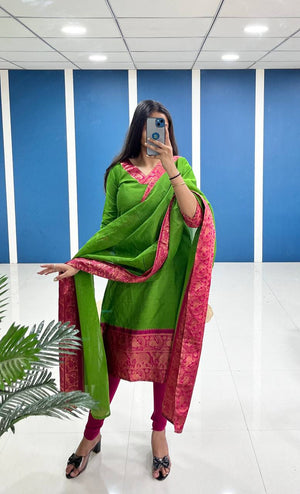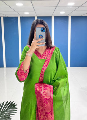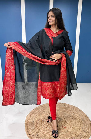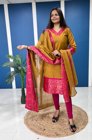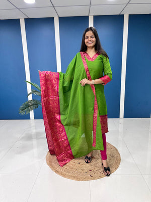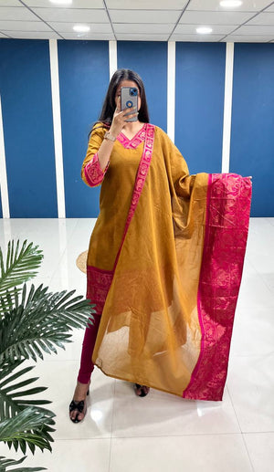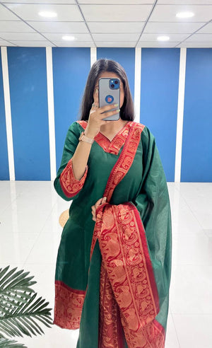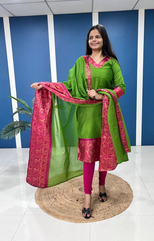 Silk Cotton Kurti and Dupatta Set with Intricate Weaving Work