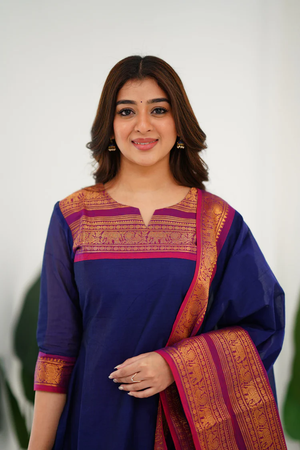 Silk South Cotton Kurti and Dupatta Set with Intricate Weaving Work