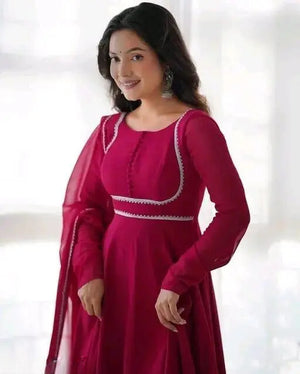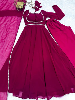 Stylish Trendy Printed Georgette Gown Set With Dupatta
